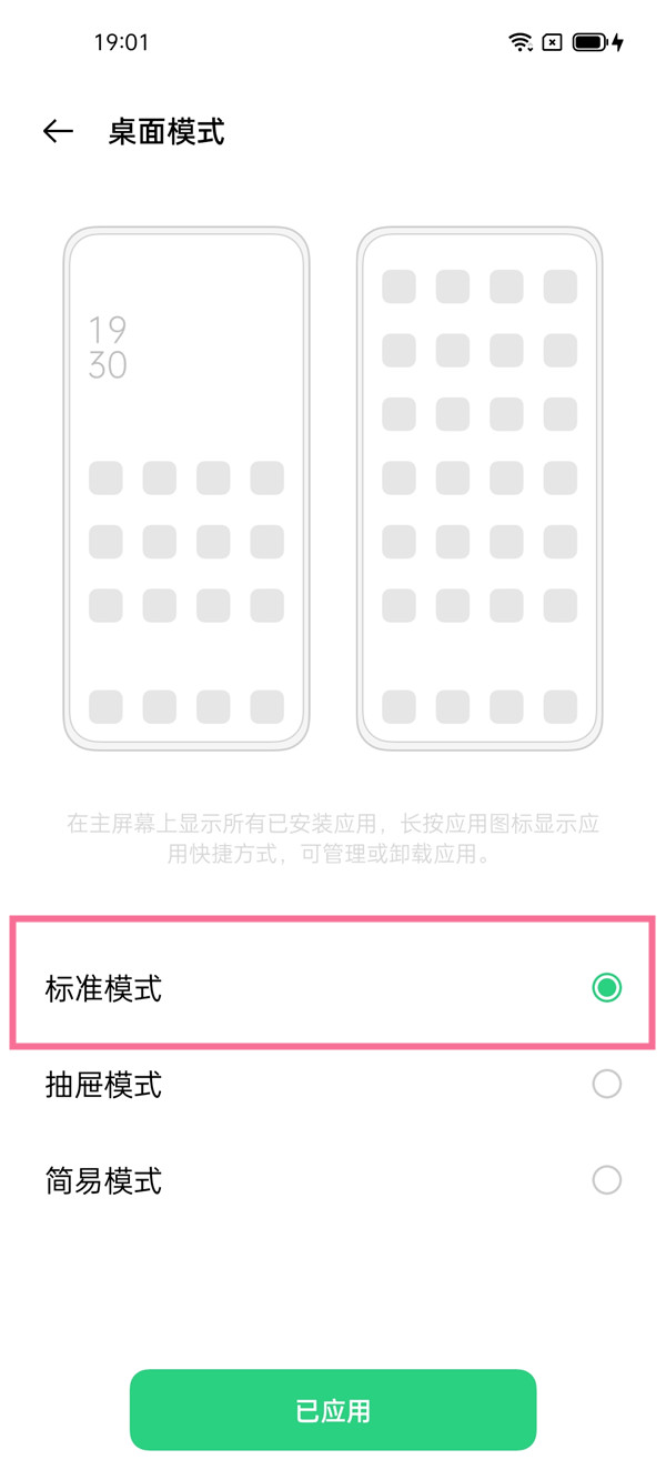 oppo手机下载的软件不在桌面上可能是因为开启了抽屉模式,取消抽屉模式教程如下: