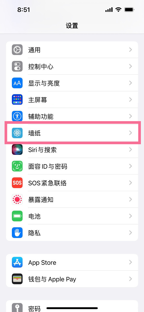 1、在手机设置菜单中点击【墙纸】选项。