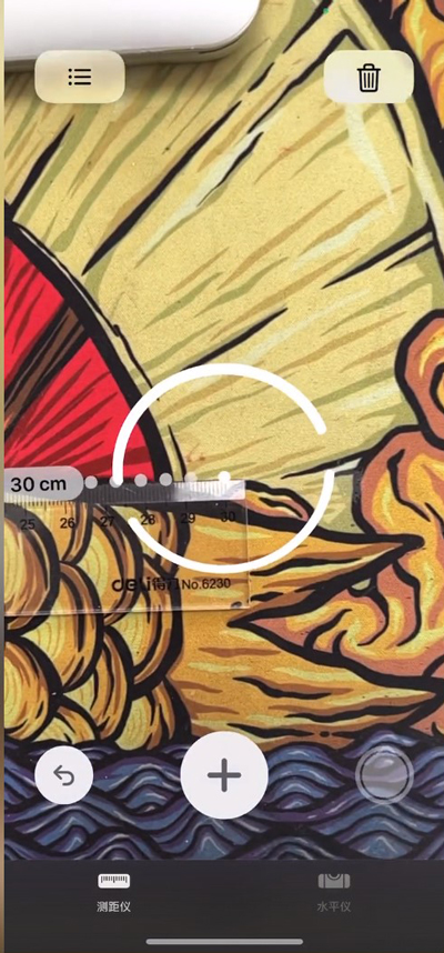 2、缓慢的移动手机,到终点时,点击【+】号结束测量。