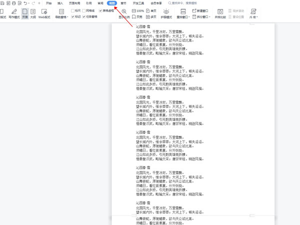 1、打开WPS文档编辑页面,点击上方的【视图】。