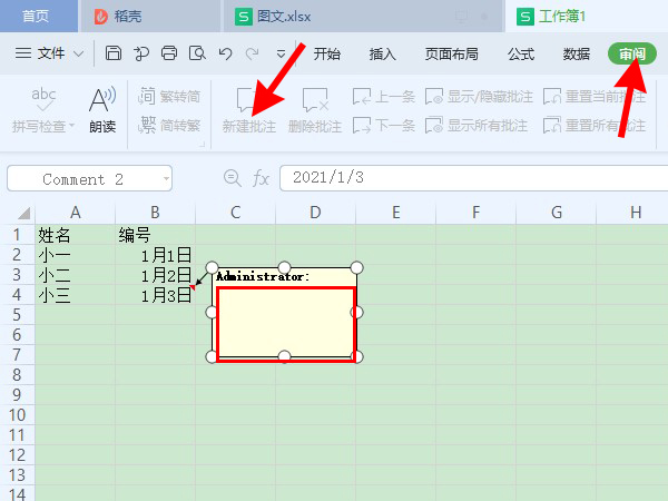 2、点击菜单栏中的【审阅】,点击【新建批注】,输入批注内容即可添加批注。