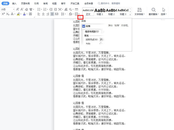 1、打开word文档编辑页面,在开始页面点击进入段落设置。