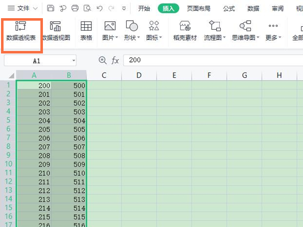 1、打开表格,选中需要进行分析的数据内容,在插入选项中点击数据透视表。