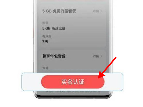 3、确认赠送的5G套餐,准备好身份证,点击实名认证。