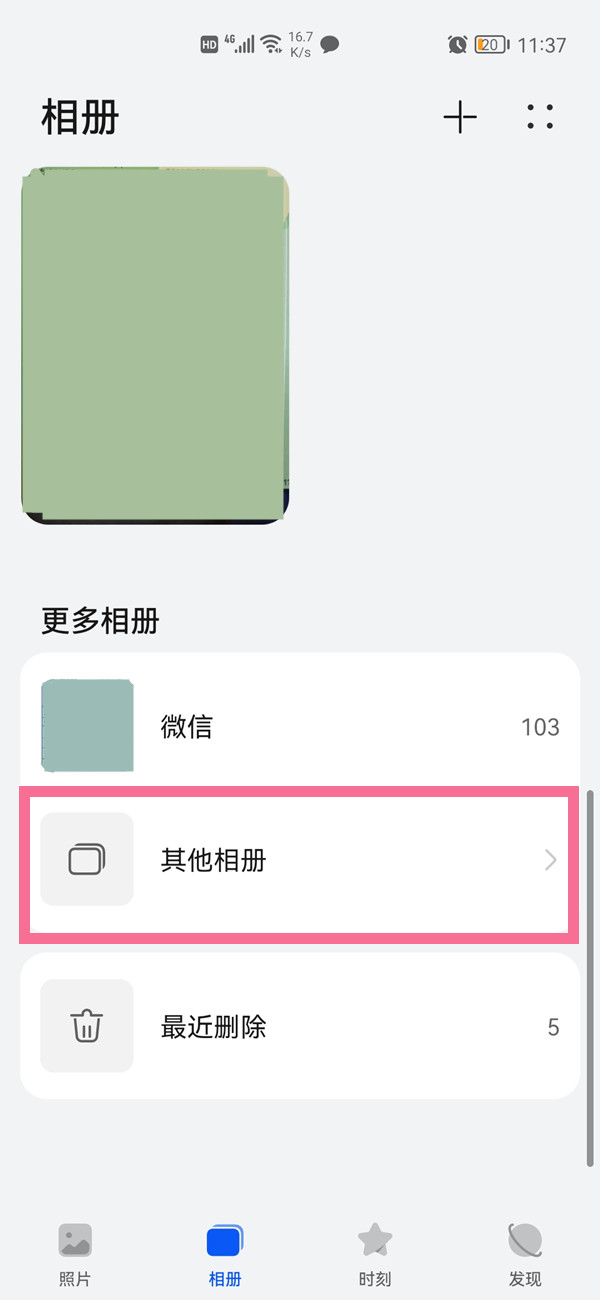 1、打开手机图库,在“相册”界面点击【其他相册】。