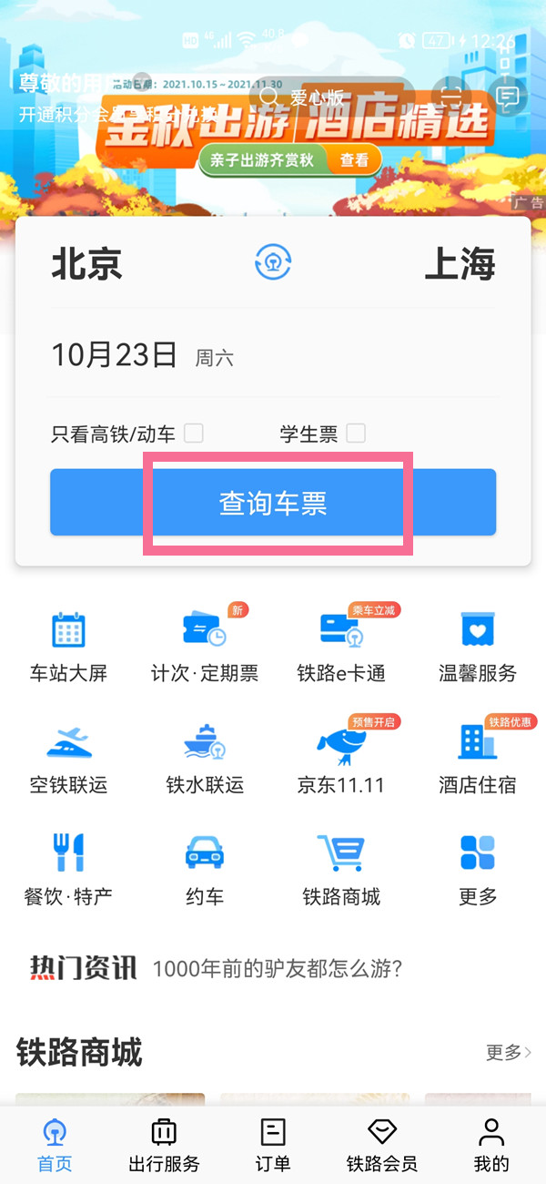 本文以华为mate40pro为例适用于HarmonyOS 2.0系统铁路12306 V5.4.10版本