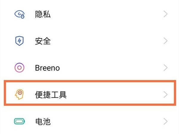 1、打开手机桌面设置功能,点击便捷工具选项。