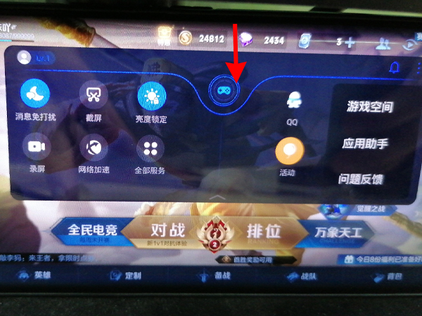 2、从游戏上方下滑屏幕,就能进入游戏模式。