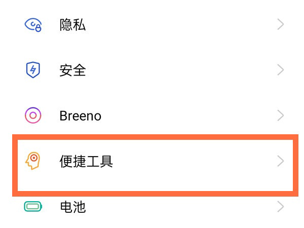 1、在手机设置菜单中点击【便捷工具】。