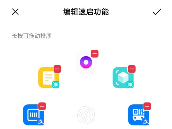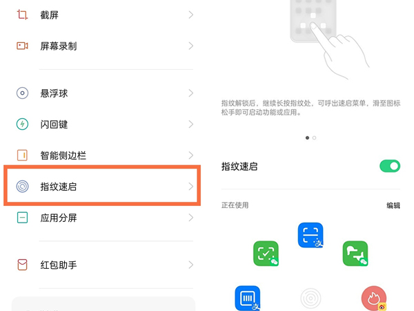 3、开启后点击编辑即可编辑指纹速启应用和位置。锁屏时长按指纹解锁处即可呼出。
