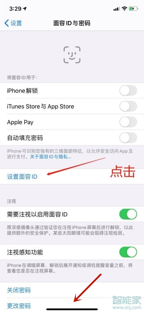 苹果13mini支持面容和密码解锁,设置面容和密码解锁需两个步骤,在面容ID及密码设置中设置密码和录入人脸即可,具体操作步骤如下: