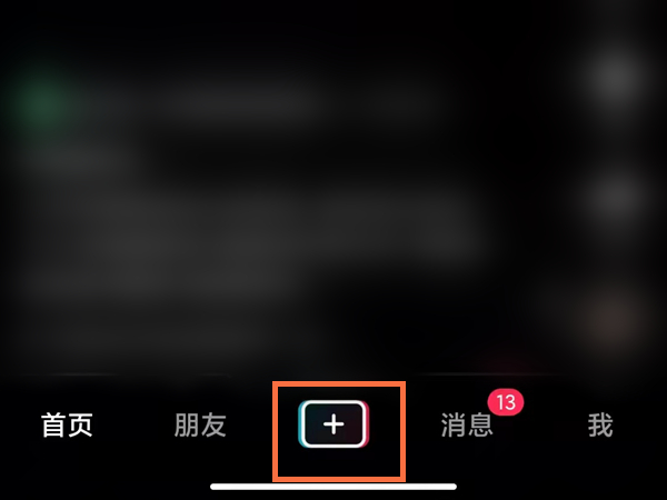 1、打开抖音app,点击底部的“+”号进入拍摄页面。