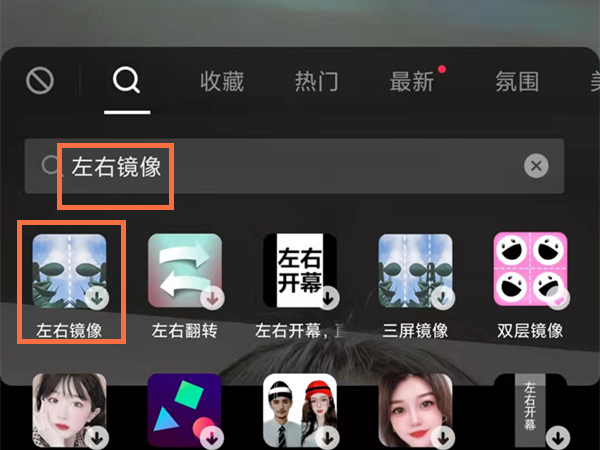 3、点击搜索图标,输入“左右镜像”,点击左右镜像即可应用。
