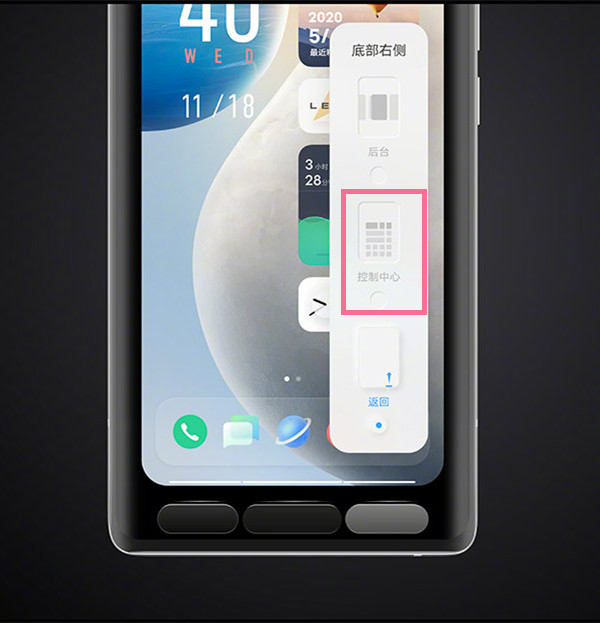 4、点击底部左侧或右侧按钮即可设置上滑控制中心。