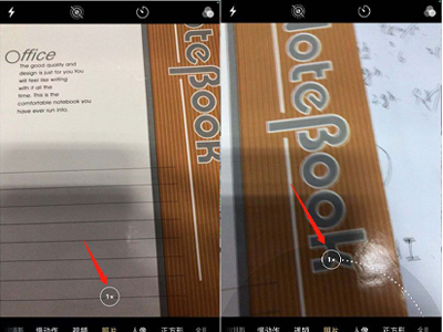 2、长按相机拍照按键上方的【1x】标识拖动到【5x】即可放大5倍。