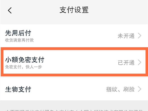 3、点击【小额免密支付】。