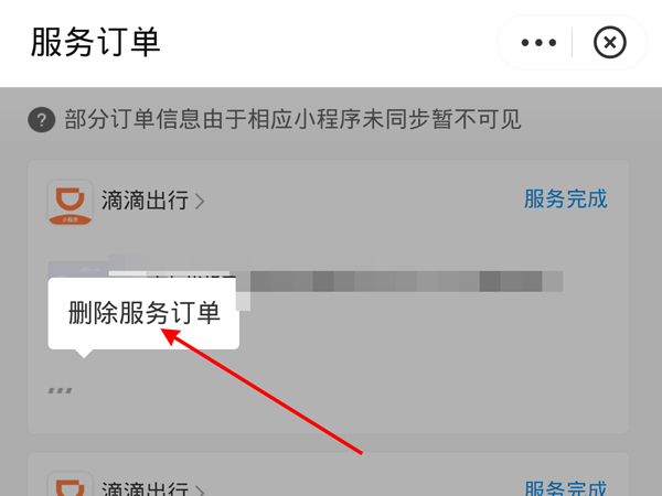 3、找到需要删除的打车记录,点击下方三点,点击删除服务订单。