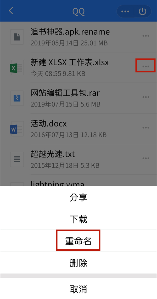 使用qq接收或者发送文件时候,为了更好的区分文件性质,可以将文件修改名字,手机qq文件怎么重命名?