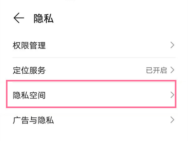 1、打开手机设置 ,点击隐私选项,点击隐私空间。