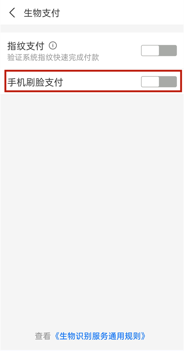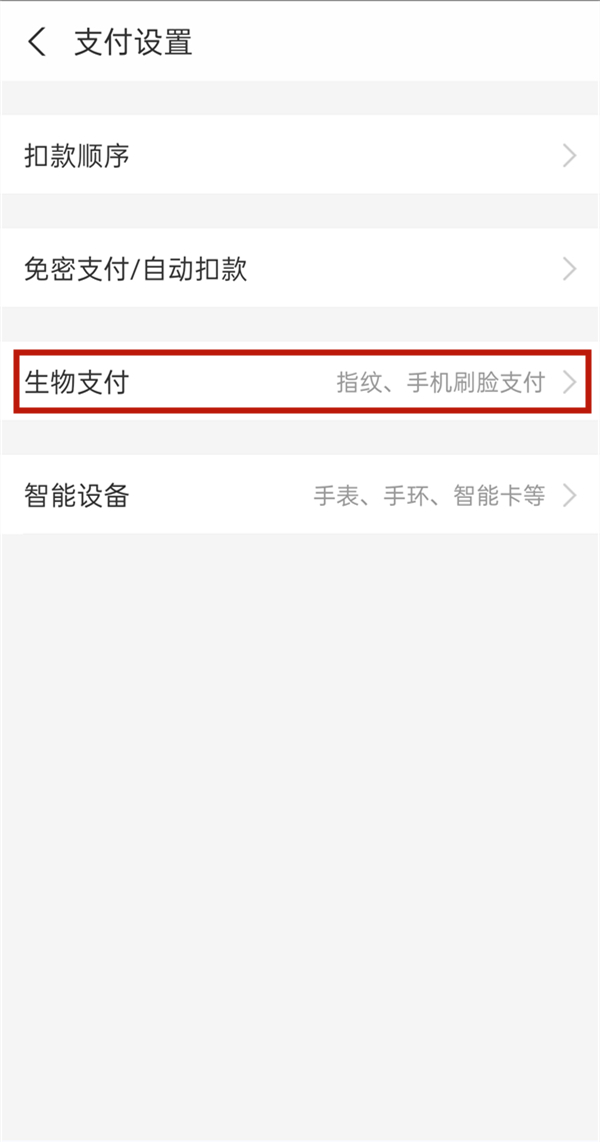 3、在支付设置页面点击生物支付。