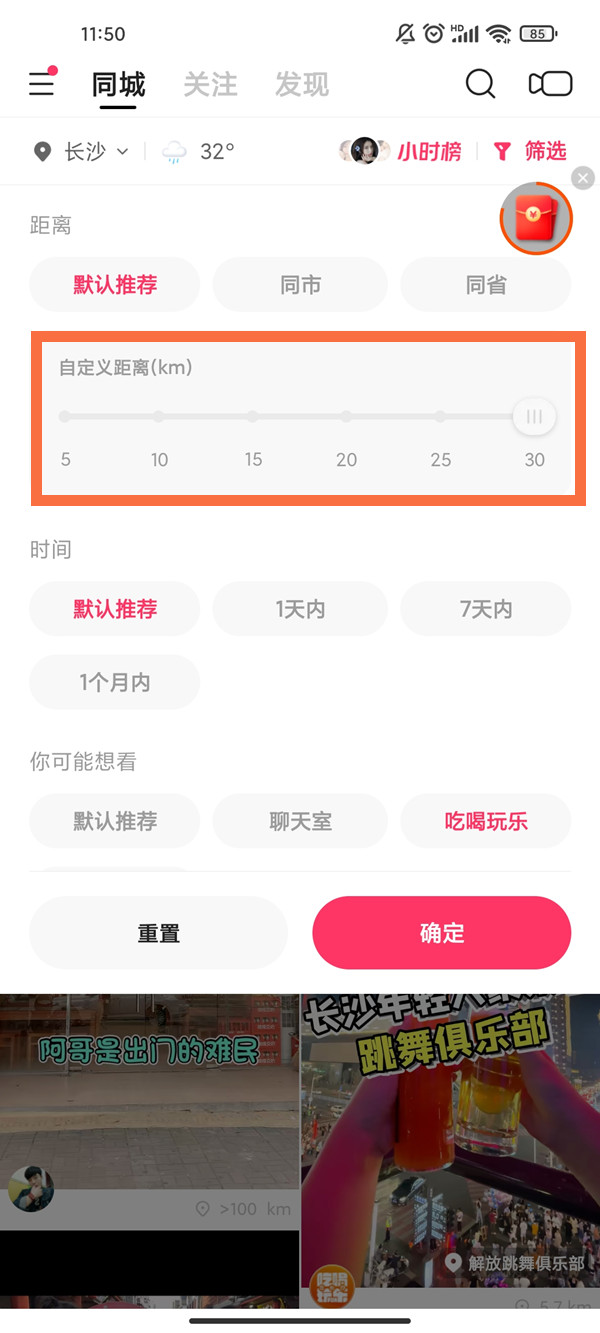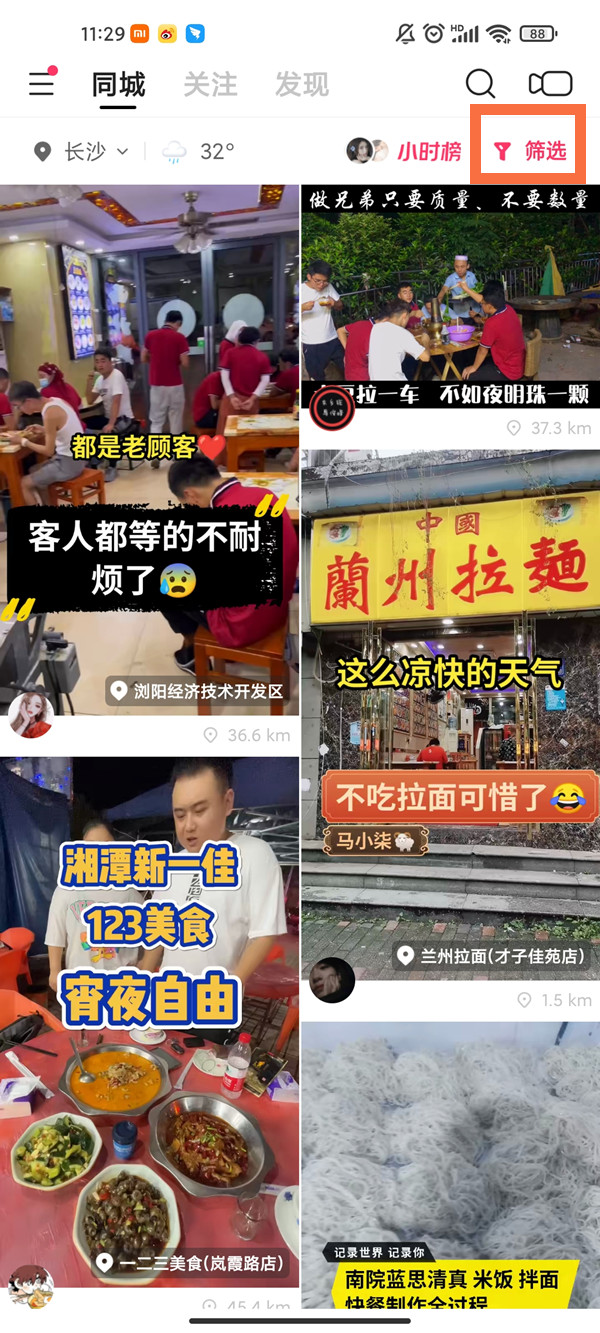 1、打开快手,切换至“同城”页面,点击右上角的【筛选】。