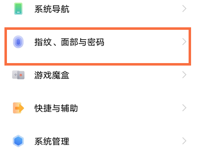 1、在手机设置菜单中点击【指纹、面部与密码】。