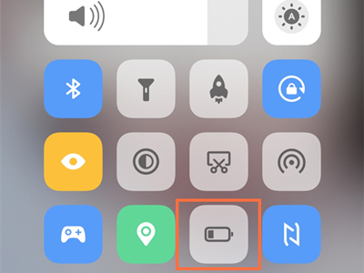 3、或者呼出控制中心,找到省电模式的图标,点击成蓝色即可开启。