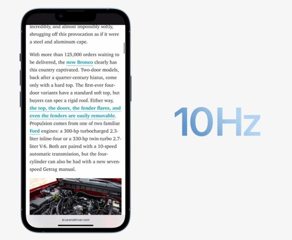 苹果13pro采用了全新的超视网膜XDR显示屏,支持ProMotion技术,自适应刷新率最高可达120Hz,刷新率会随着内容而自动调整,触控体验超快、响应更灵敏。Pro级摄像头系统在全新超广角、广角和长焦镜头上实现了迄今最大的飞跃,在性能出众的A15仿生芯片驱动下,供用户捕捉震撼的画面和视频片段。