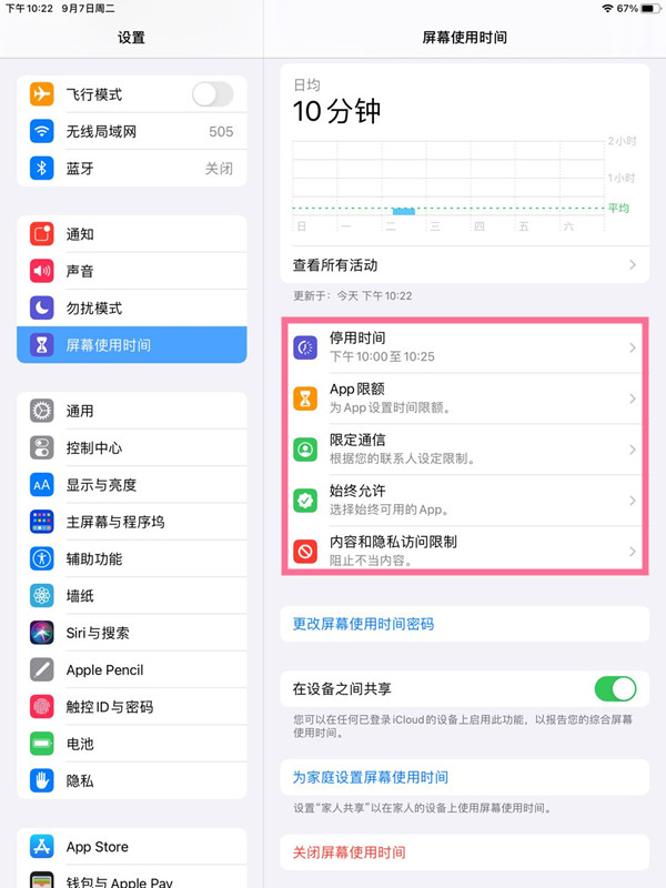 2、设置密码后,对平板的使用时间、APP使用时间等进行设置即可。