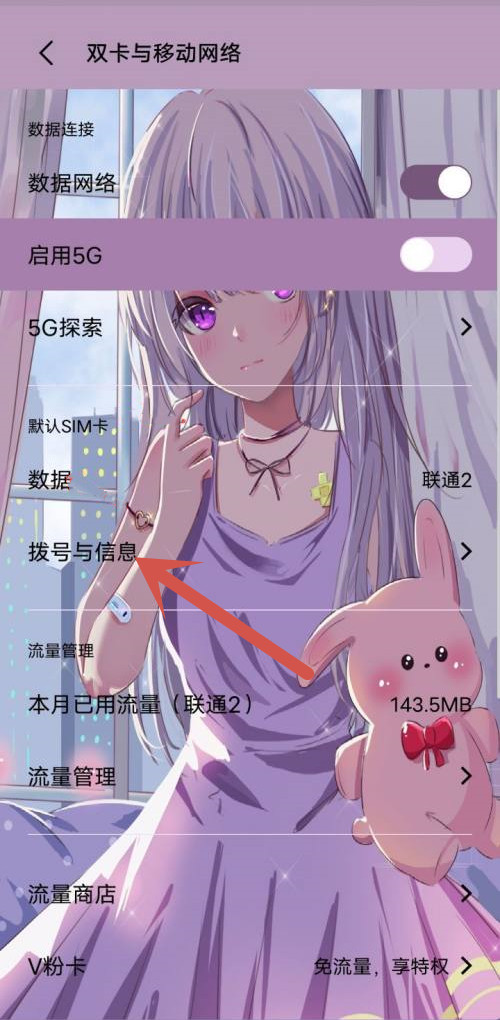 2、点击【拨号与信息】,可设置默认数据卡及默认拨号卡等操作。