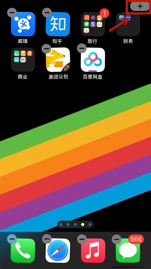 1、长按桌面空白处进入添加小组件状态,点击右上角的【+】。
