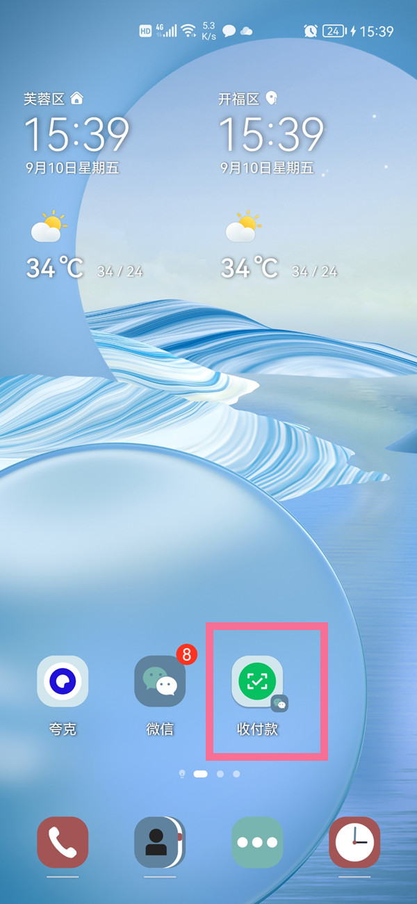 2、长按收付款即可添加到桌面。
