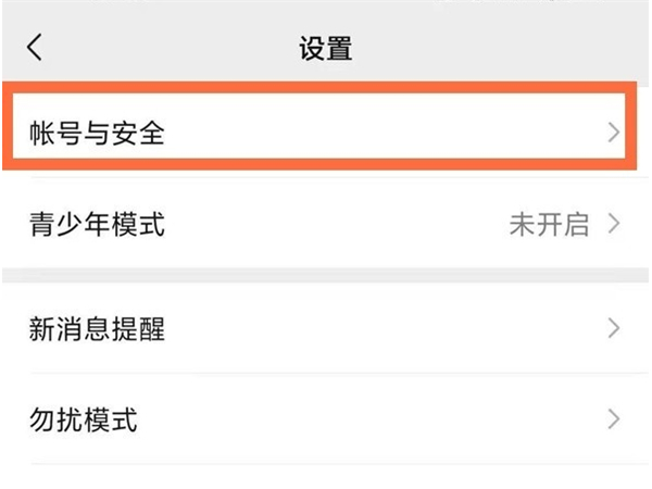 2、在设置中点击帐号与安全。