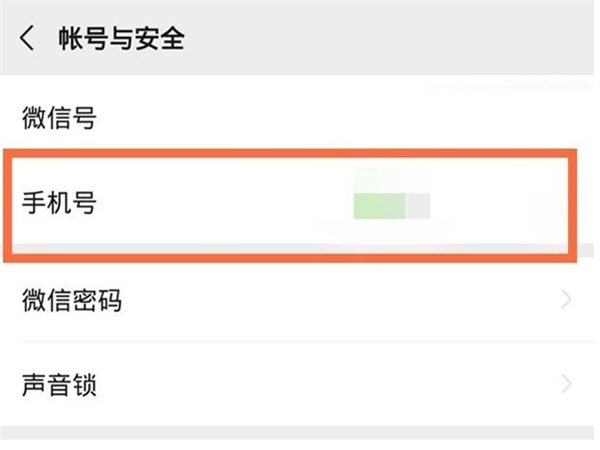 3、在账号与安全页面点击手机号。
