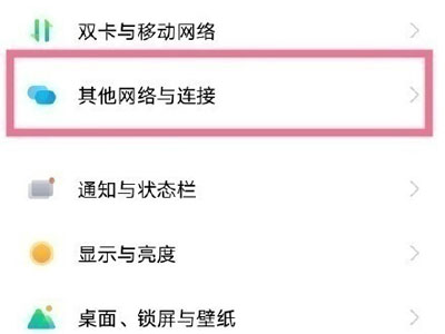 1、在手机设置菜单中点击【其他网络与连接】。