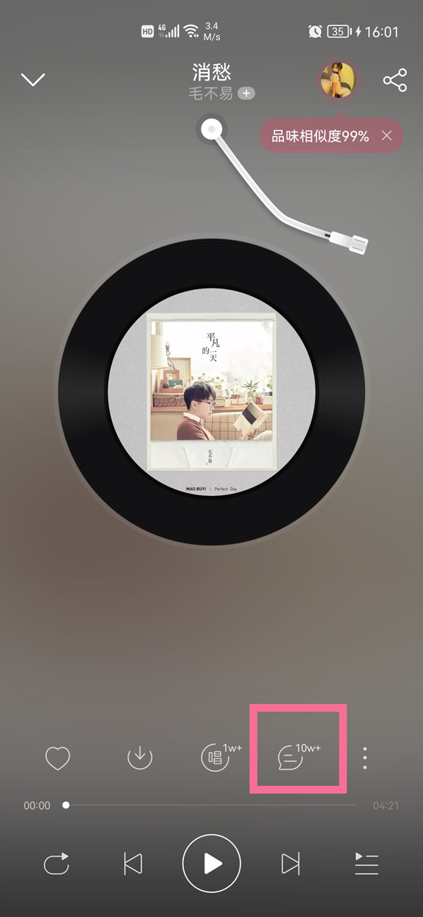 1、在网易云音乐中打开一首歌曲,在播放界面点击评论图标。