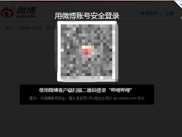 4、使用手机微博扫描二维码登录哔哩哔哩即可绑定。
