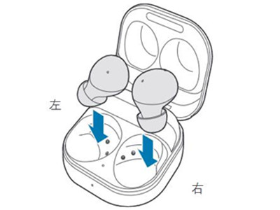 1、打开充电保护盒,将耳机正确插入充电保护盒中的相应插槽中。