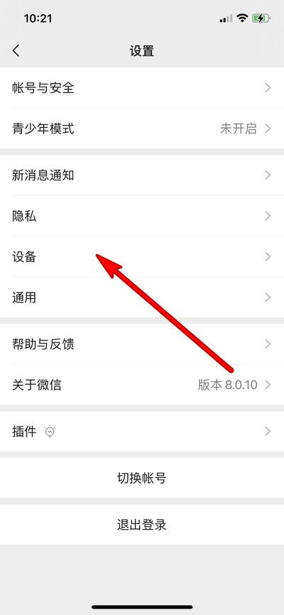 1、在微信“我”界面点击设置,选择【设备】。