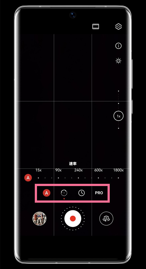 3、点击拍摄键上方的自动,设置速率、录制时长等后拍摄即可。