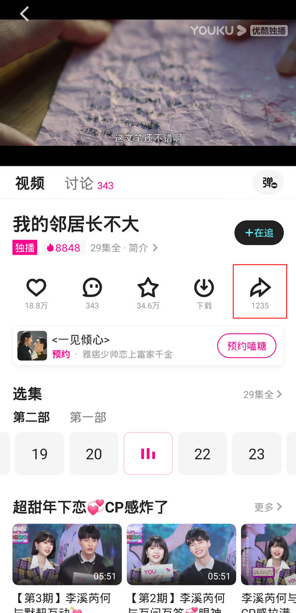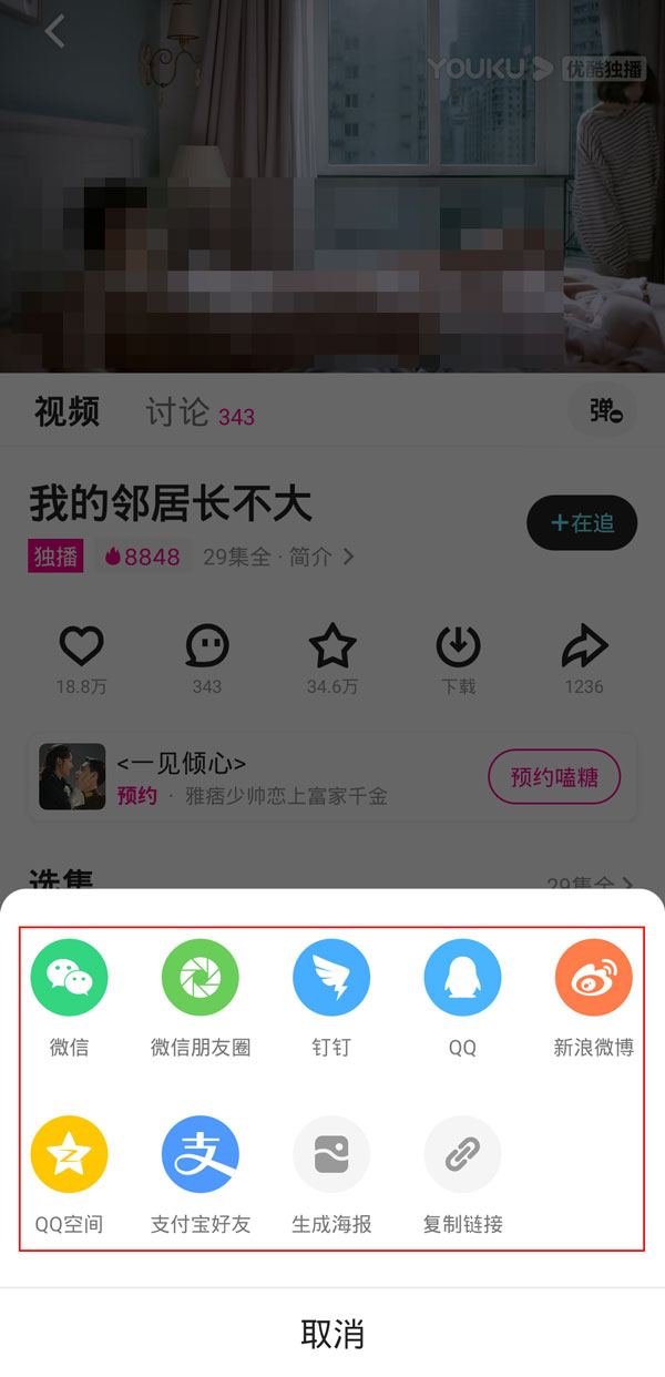 2026优酷没有一起看功能,但喜欢的视频可以分享给好友,分享步骤如下: