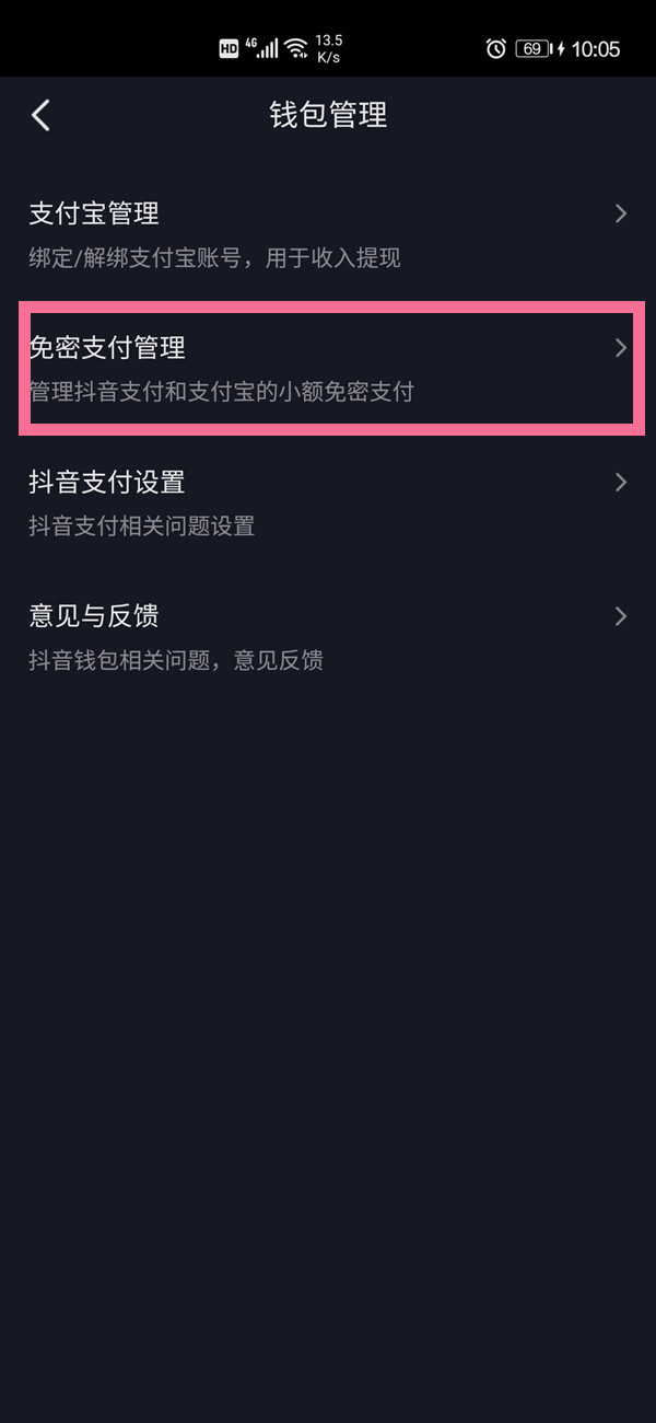 3、点击【免密支付管理】。