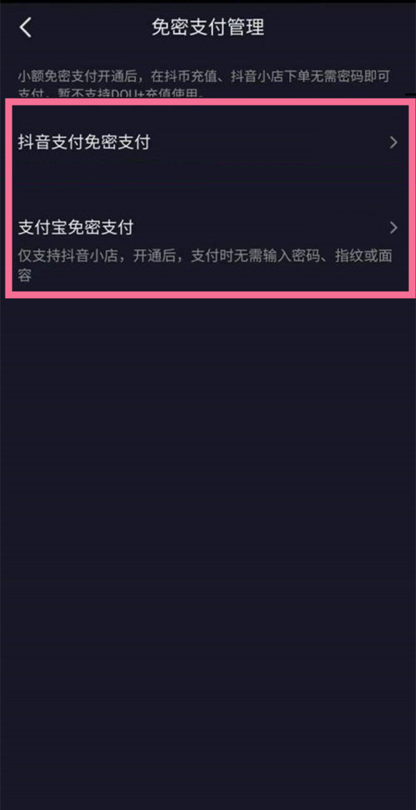 4、关闭【抖音支付免密支付】、【支付宝免密支付】即可。
