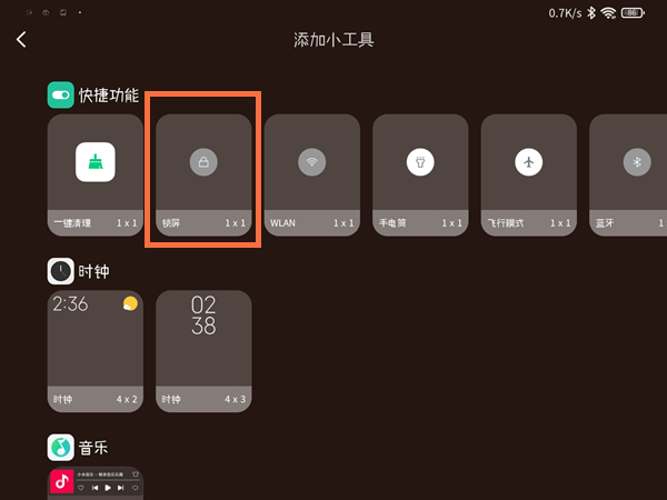 ️3、一键锁屏:在桌面双指捏合,进入桌面编辑状态,选择添加工具,再点击锁屏,将其添加到桌面。