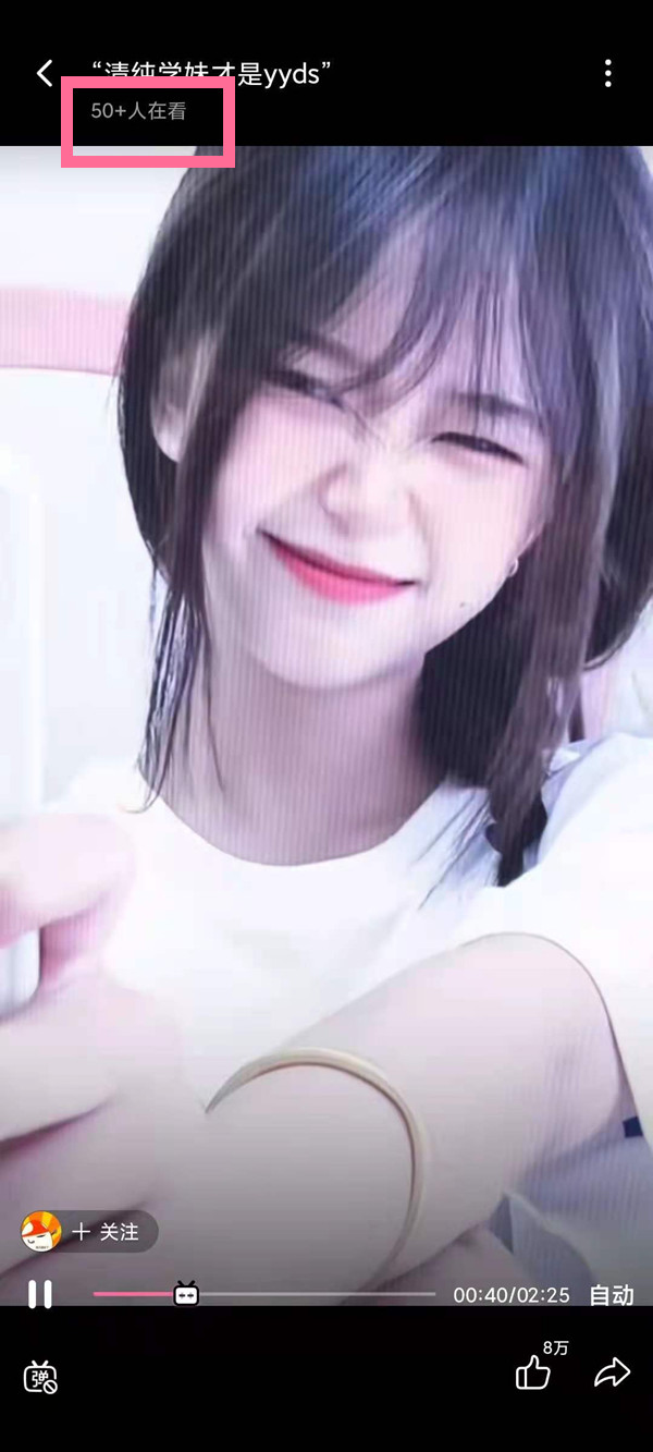 2、进入全屏播放页面后,在视频的左上角可以看到同时观看人数。