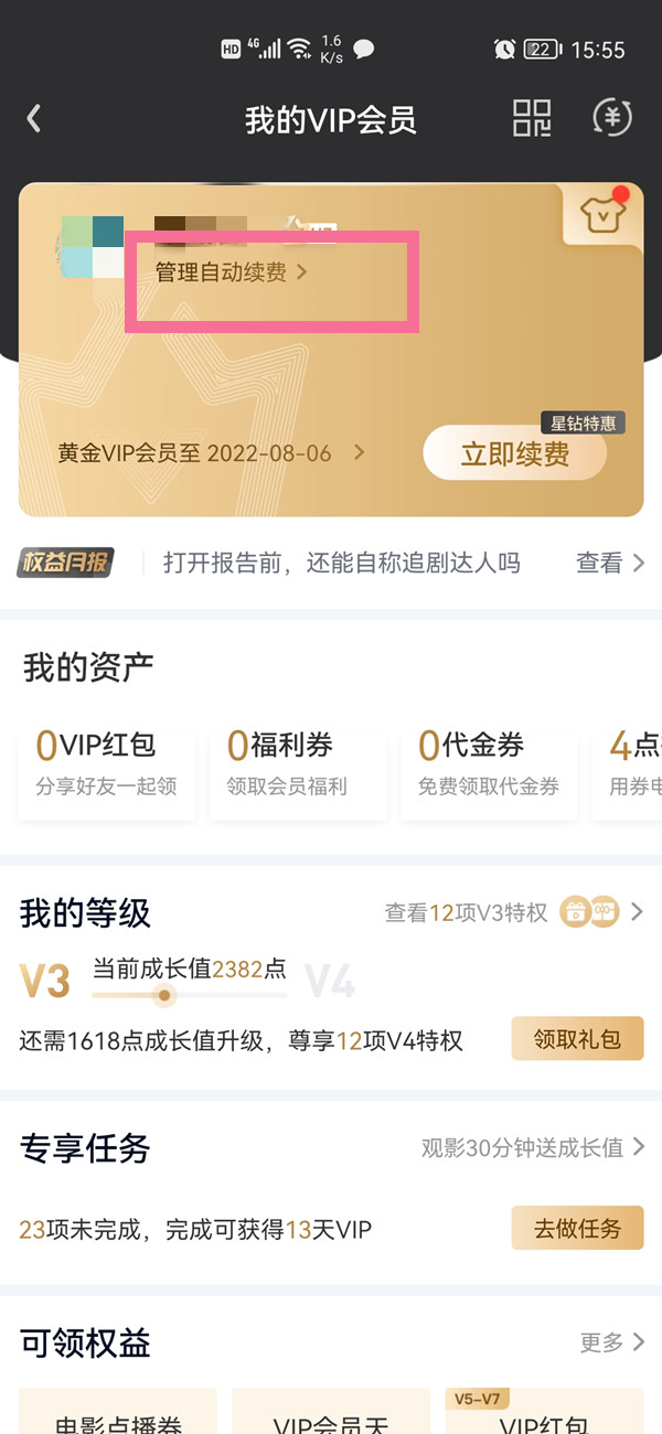 2、点击【管理自动续费】