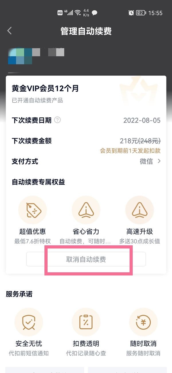 3、点击【取消自动续费】即可。