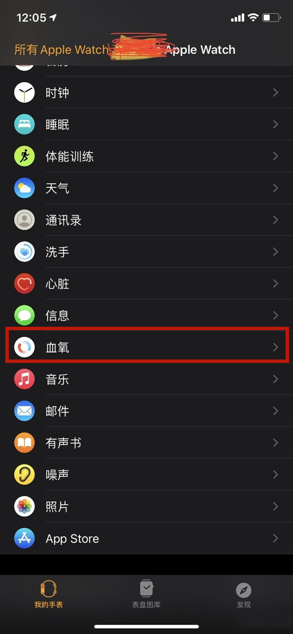 1、打开watch app,点击血氧。