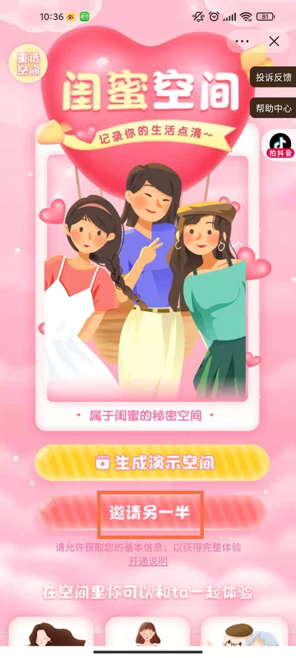 5、点击“邀请另一半”,等好友同意后即可开通。