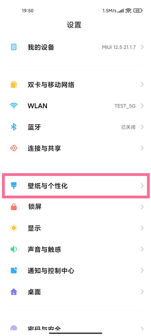 小米的超级壁纸在哪里?1、在手机设置菜单中点击【壁纸与个性化】。